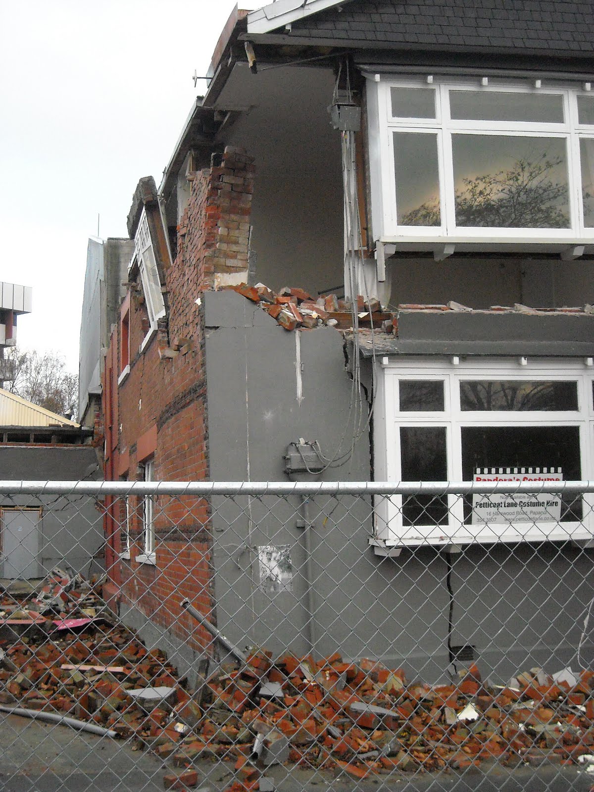 10.06.11. Sept 4 quake damaged, Feb 22 quake trashed, red zone, Colombo St housing. The houses would be demolished