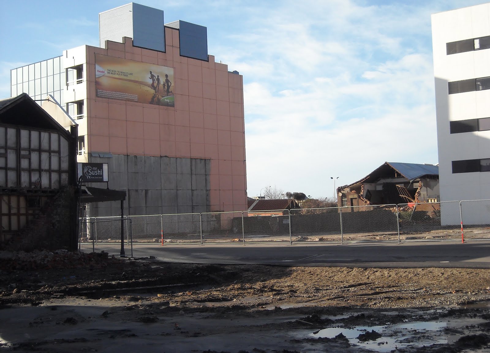 05.07.11. Post June 13 quake, concrete tilt slab, construction site on Sept 4 quake demolition site, Victoria St, near Bealey Ave