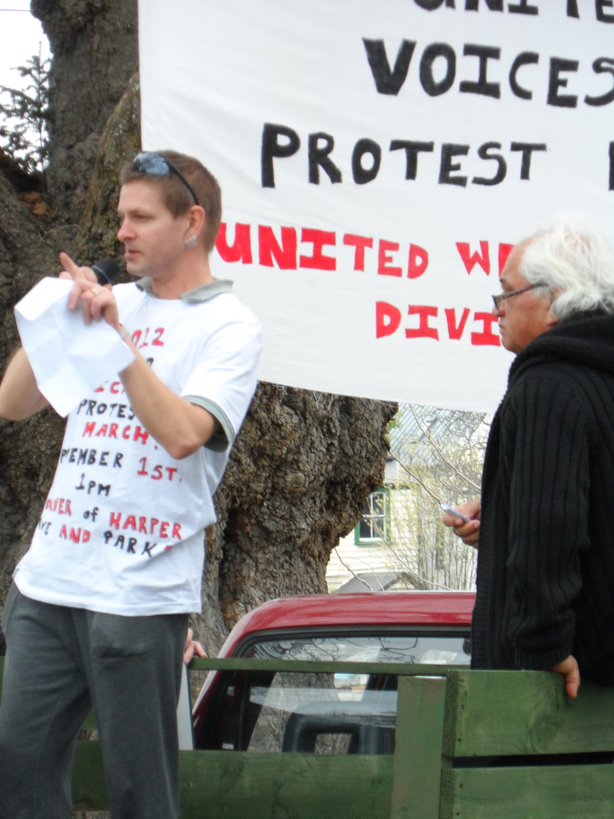 01.09.12. United Voices Protest, organizer, speakers, Cranmer Sq